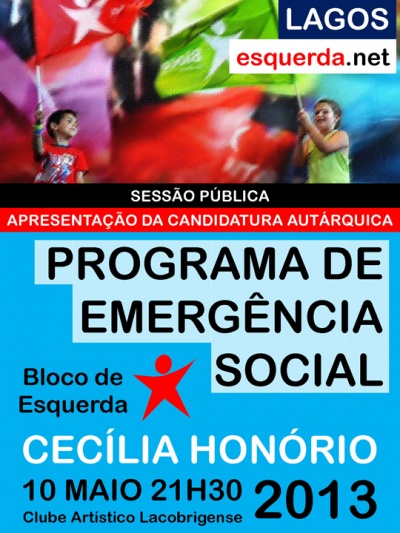 Sessão Pública acerca do Programa de Emergência Social com a participação da deputada parlamentar pelo Bloco de Esquerda Cecília Honório | Apresentação da Candidatura Autárquica do Bloco de Esquerda de Lagos.