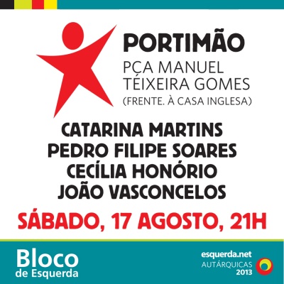 Portimão, Pç. Manuel Teixeira Gomes (frente à Casa Inglesa), 21h.
